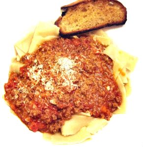My husband is a pretty good cook, and Spaghetti Bolognese has always been one of his specialties. However, when I came across this recipe I thought it might come a little closer to the fantastic Bolognese sauce we had in a restaurant recently. The differences between the two recipes are minor (the biggest being the addition of milk), but the differences in taste and consistency are huge. Both of us were astounded at how rich and hearty this sauce tasted, and after licking our bowls clean (photos NOT shown), we both decided that we will be making Bolognese sauce this way from now on.