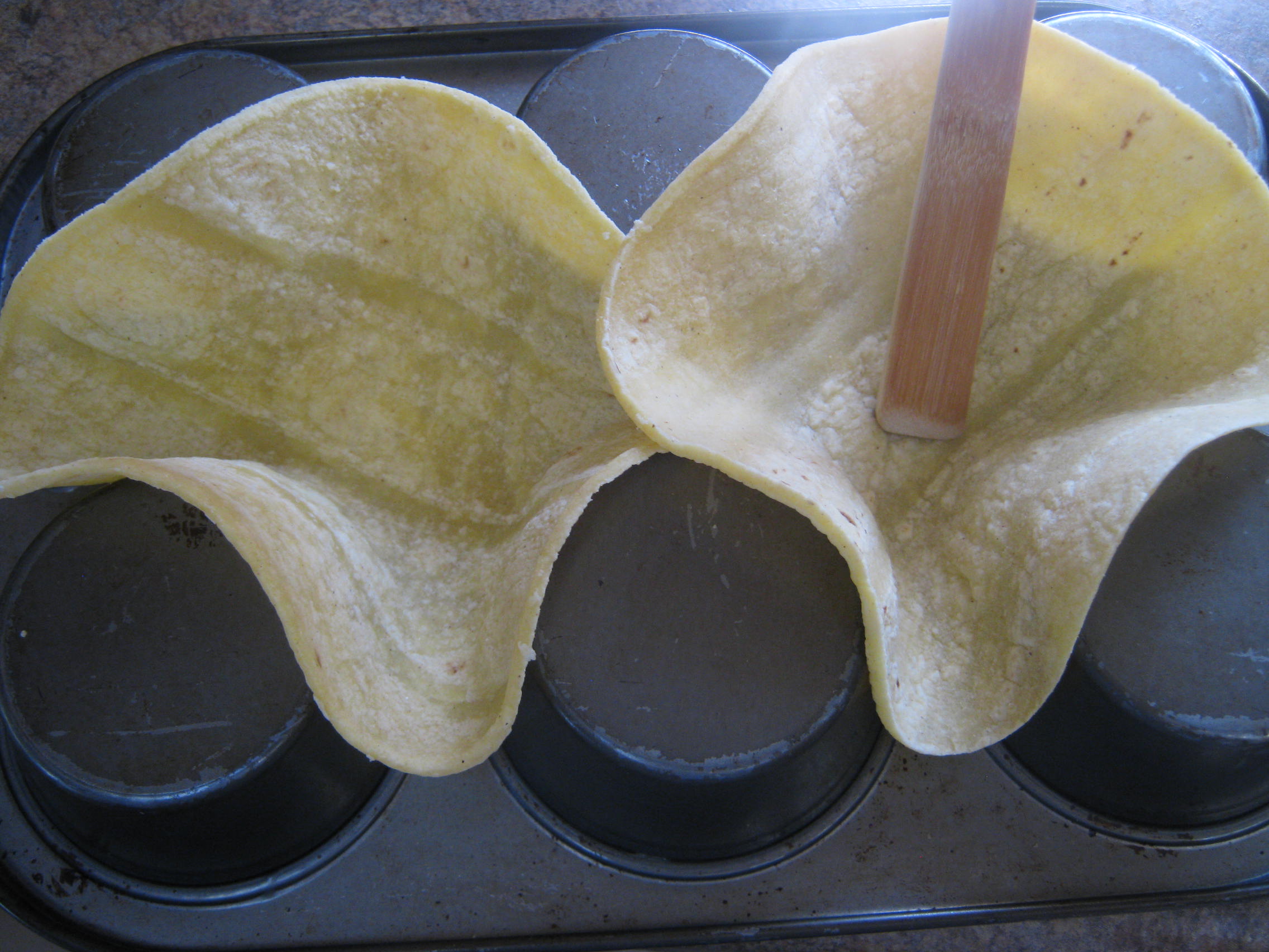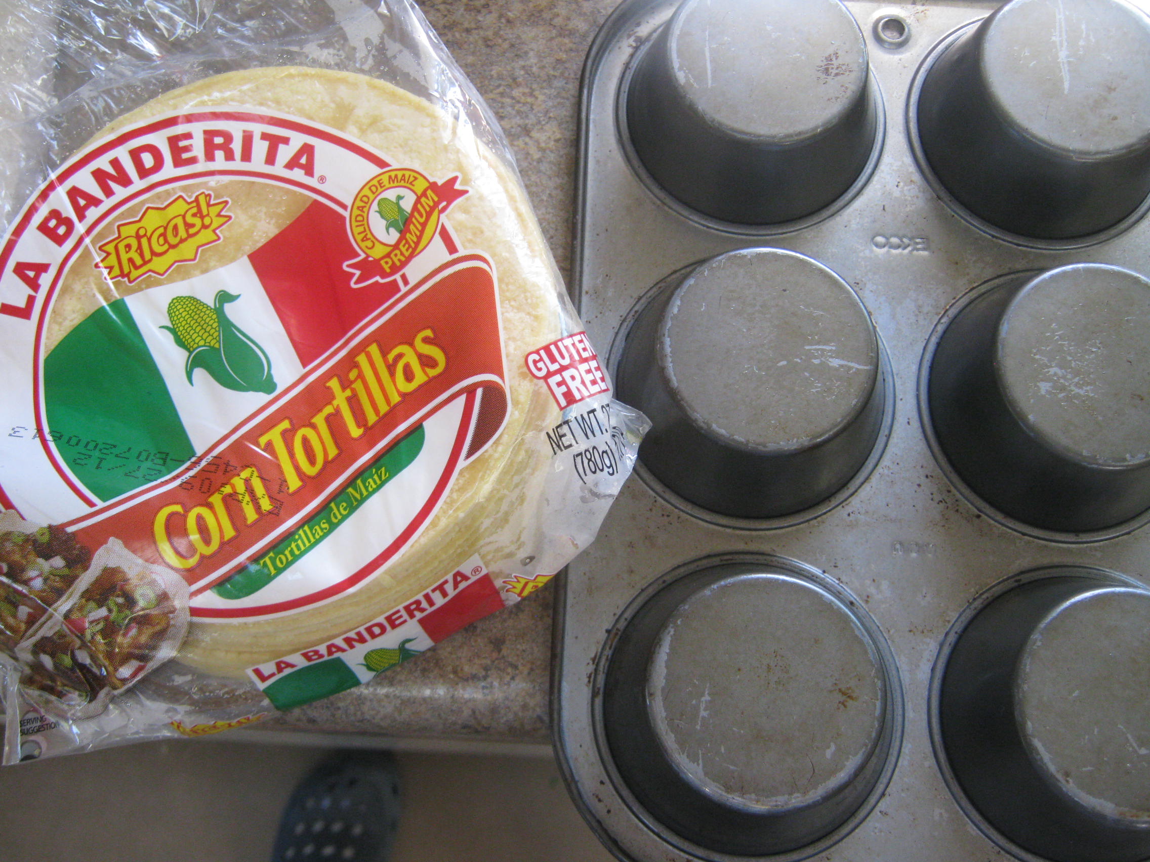 All you need are some corn tortillas and muffin tins. You can use yellow or white corn tortillas (I used yellow here), but don’t use flour tortillas. Save those for quesadillas and fajitas.