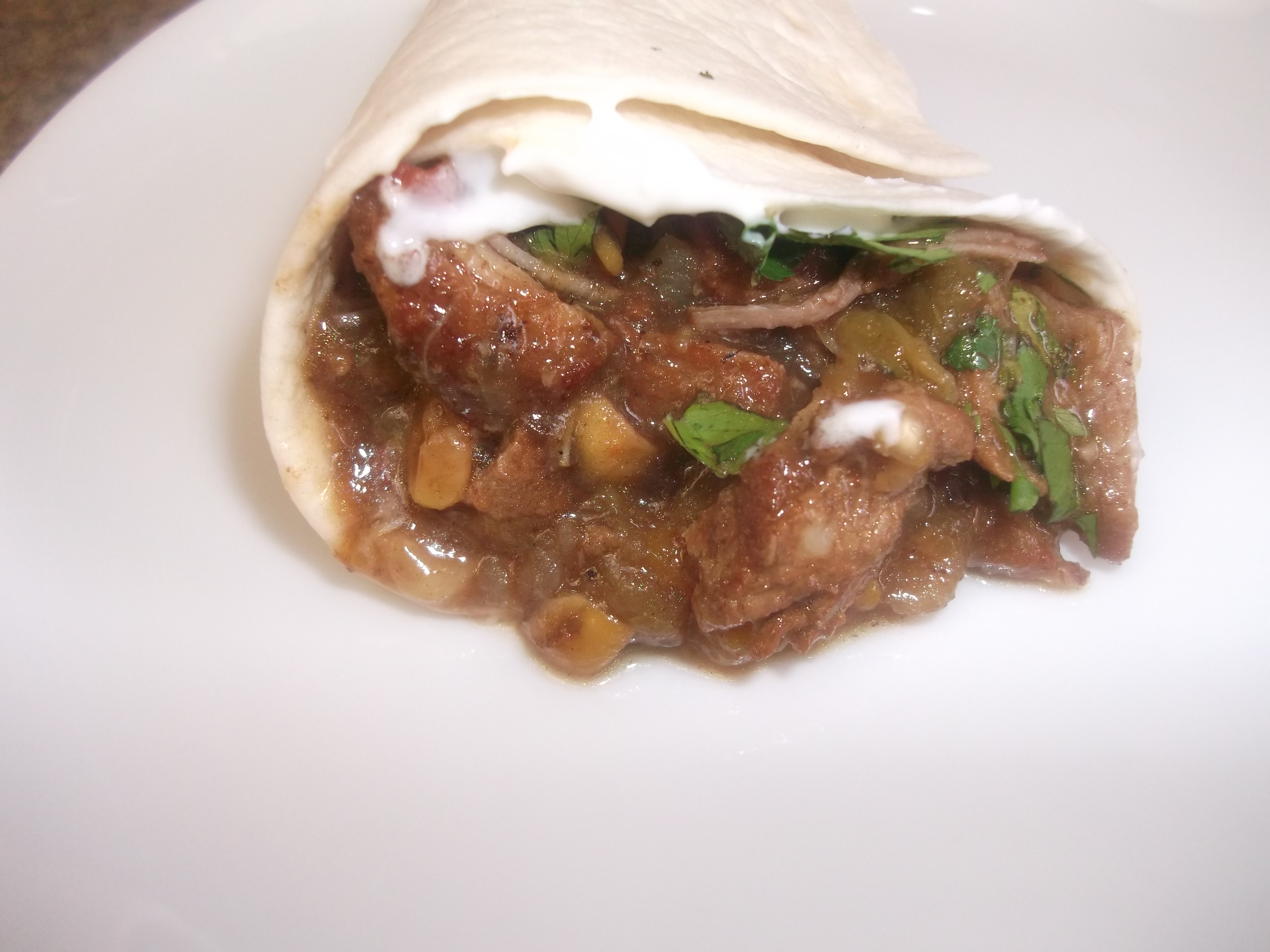 This can be served either as a stew or as a filling for flour tortillas. Garnish with sour cream and chopped cilantro.