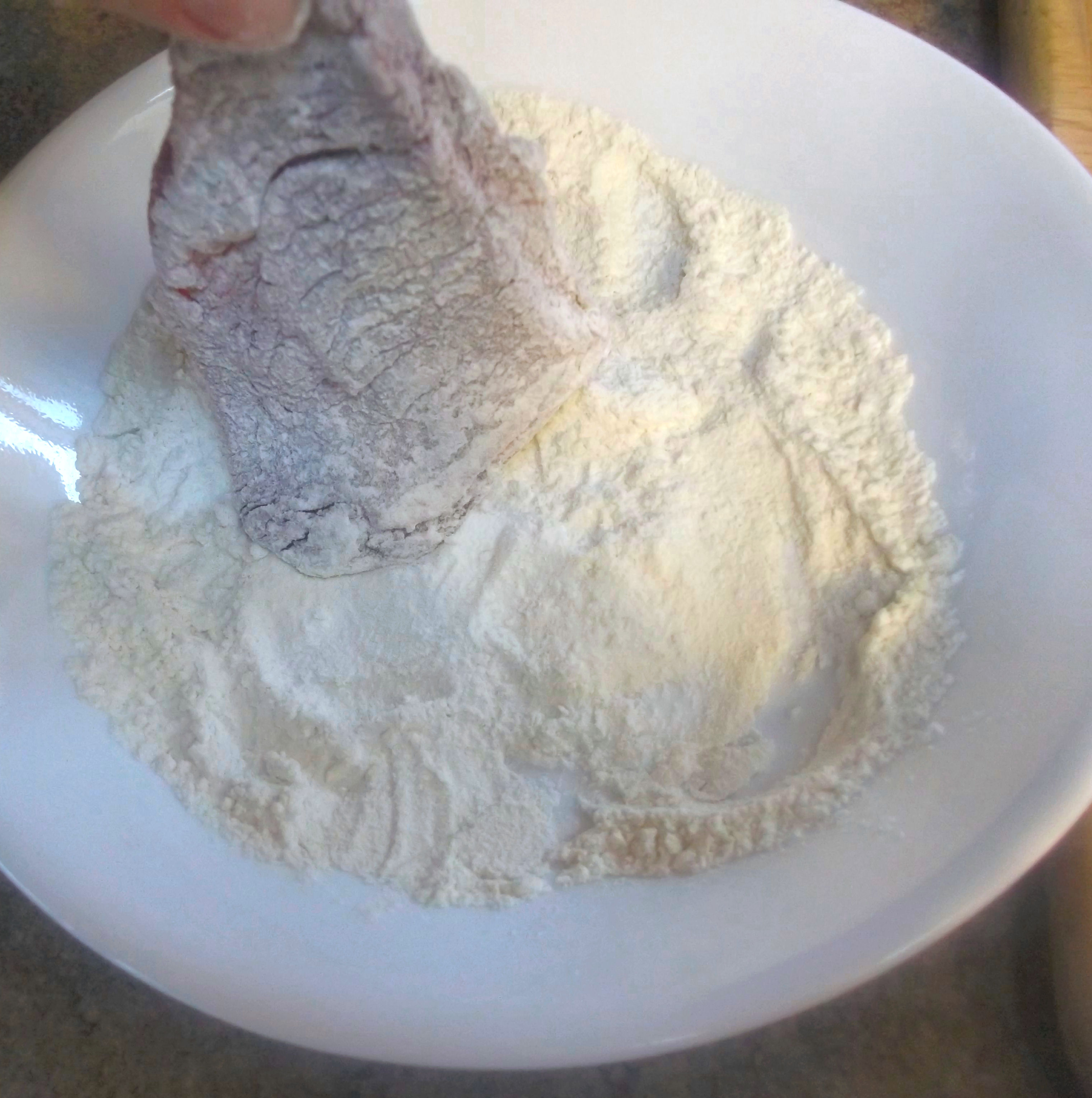 Dredge each piece of steak in flour, lightly coating each side. Gently shake off any excess and set aside.