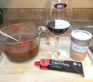 Wine: use a dry red wine, nothing too fruity, and not something that’s “just for cooking” that you wouldn’t otherwise drink. If you wouldn’t drink it, don’t cook with it. It doesn’t need to be high priced, it just has to have a flavor you like. (I like to use Cabernet, Tempranillo, Nero d’Avola or other drier reds.) Feel free to pour it into a fancy wine glass, too, if you want. I got this Riedel wine glass as a gift, so thought I’d spiff up my blog post by using it here.
