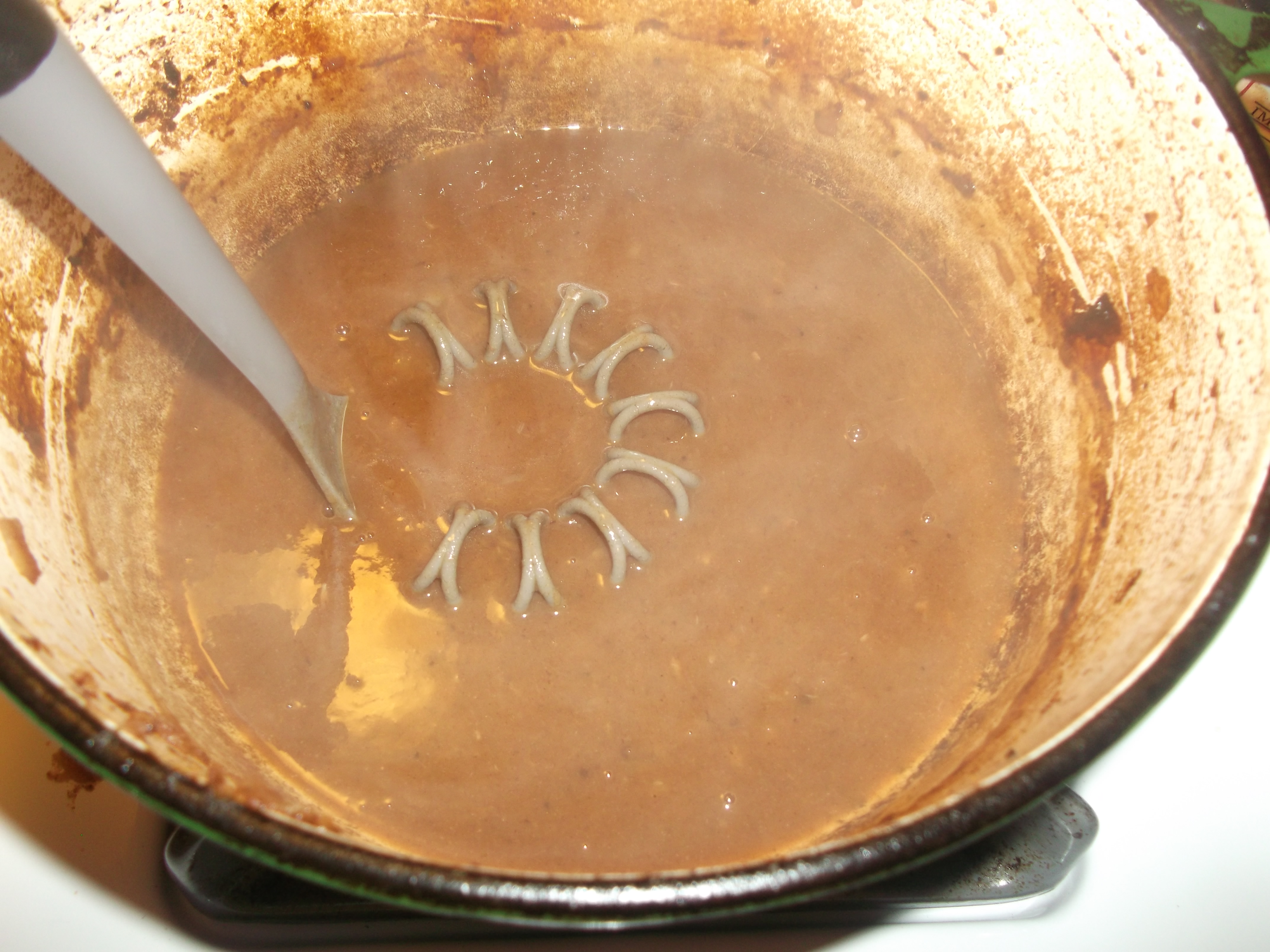 Place the pot of liquid on the stove over medium heat. An optional step is to remove some of the fat from the remaining liquid by pouring it into a fat separator, but I’ll leave that up to you. I usually don’t bother.