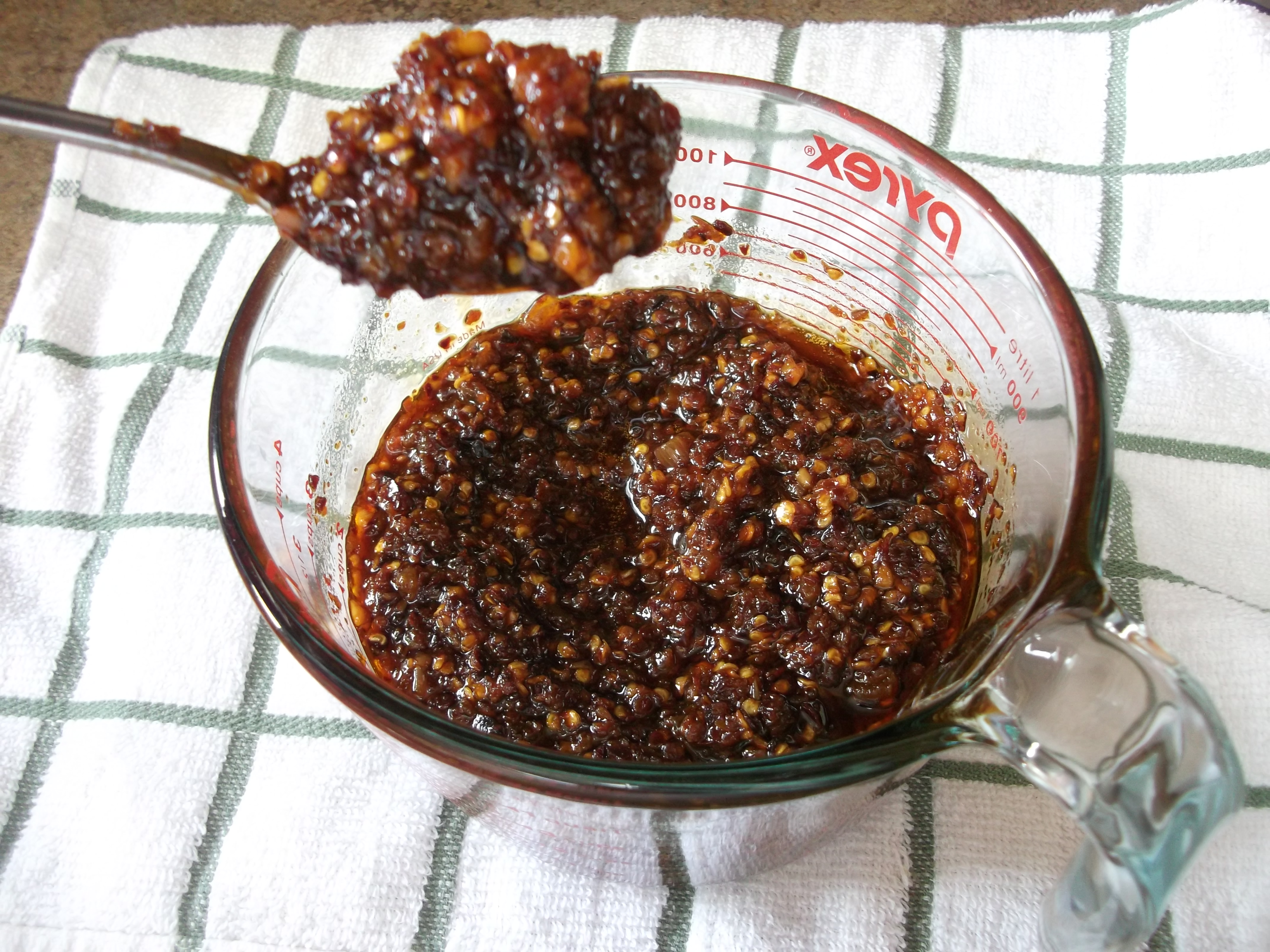 After adding more oil (another 1 to 1½ C), it became smoother in texture and the spiciness was diluted a bit. Don’t get me wrong – it still packs a punch and should be used sparingly at first, but this texture, for me, was a little more appealing.