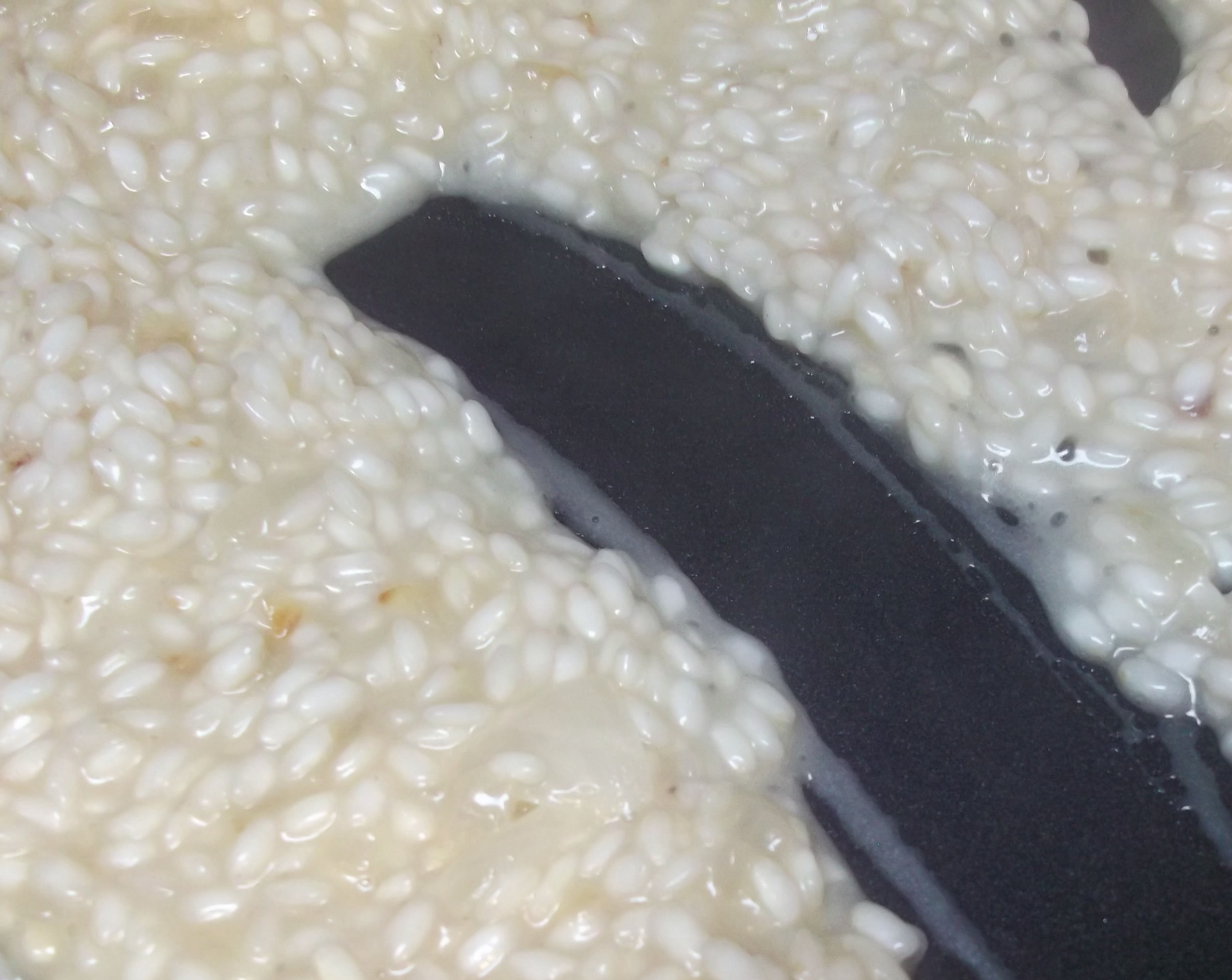 Stir frequently until the stock has been fully absorbed into the rice, and only then can you add the next ladle. You can tell when it’s ready if you scrape the pan and it takes a while for the gap to fill.