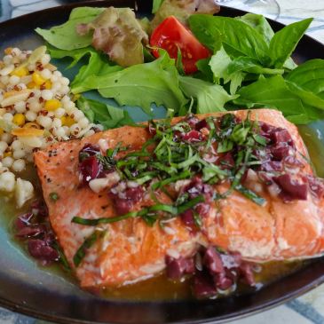 Grilling salmon just got easier and tastier: cedar grilling papers infuse a subtle smoky flavor and make for easy clean-up, and this simple vinaigrette enhances the salmon’s natural flavor and allows just about any wine to be paired with it. … More Cedar Wrapped Salmon with Basil Olive Vinaigrette